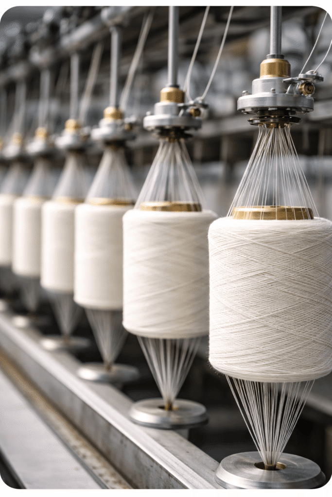 Мы используем технологичные производственные линии, которые обеспечивают точность, стабильность характеристик пряжи и высокий уровень качества готовых изделий.